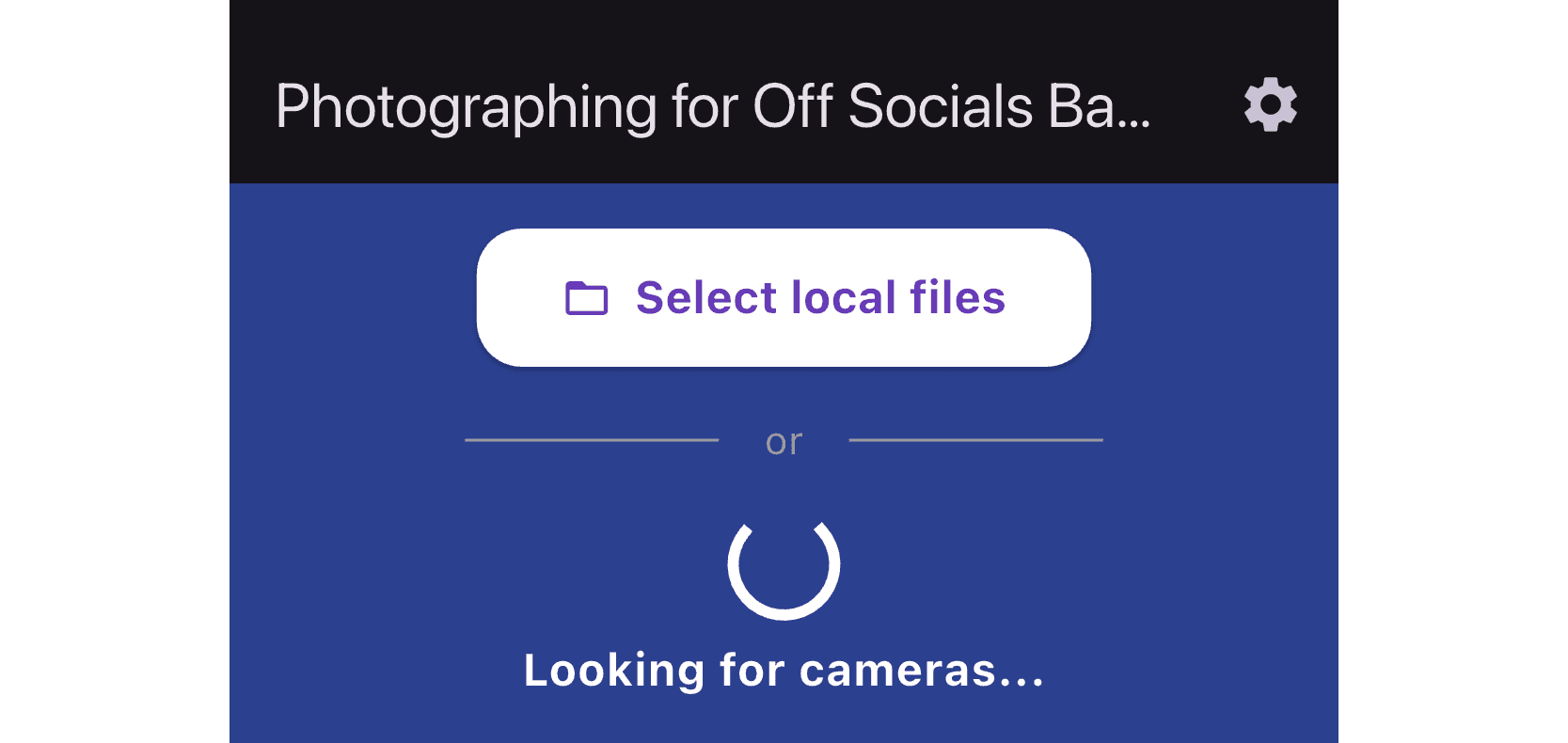 Make sure to have an account on Impulse and to create your first event. Then you can download the app and login using the same email you used on the webapp. Once logged in you should see a screen saying "Looking for cameras…"