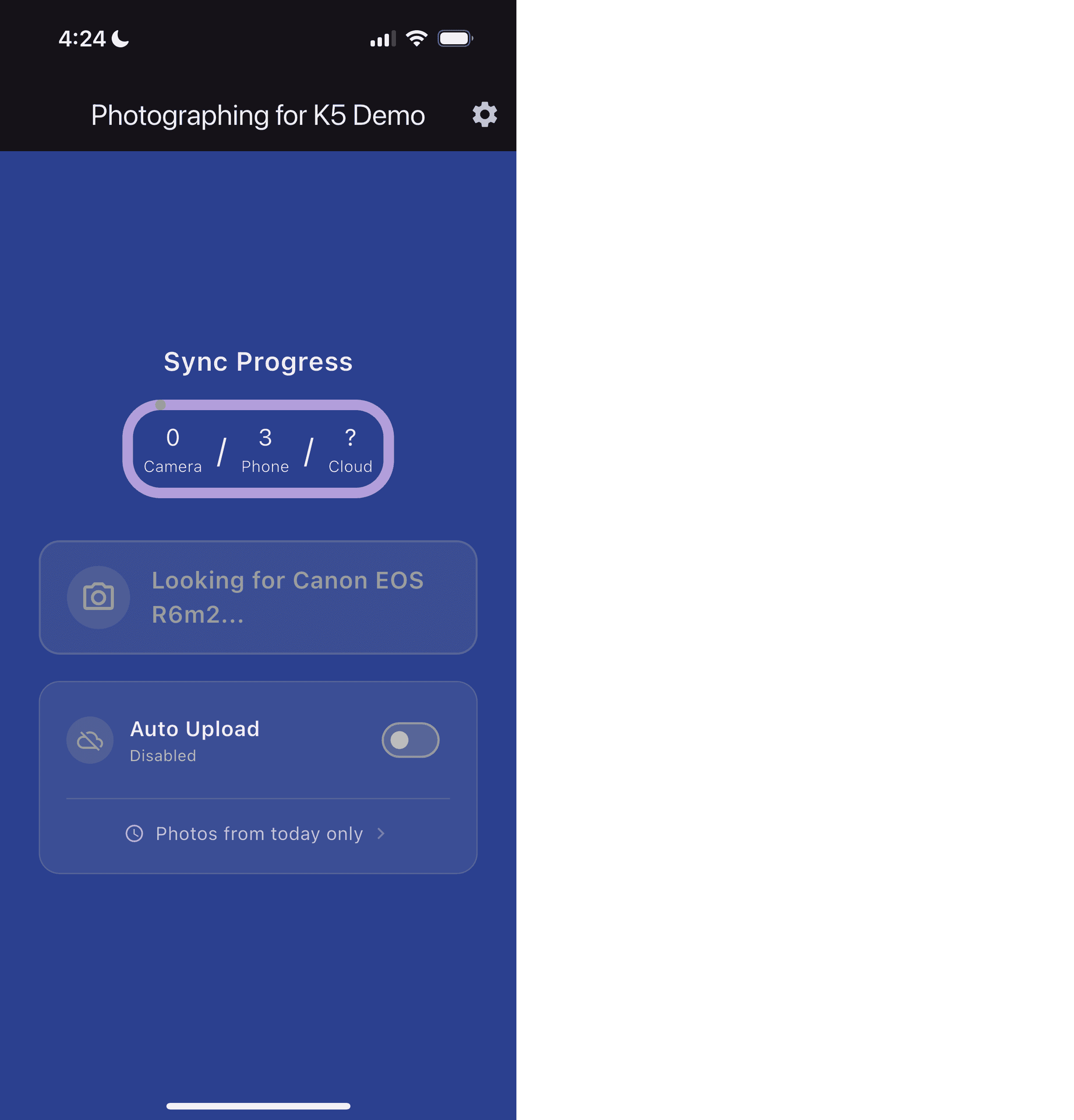 From there the app will remember your camera and you won't need to do the previous steps again (unless you want to in which case you can click "Change camera" in the setting menu at the gear icon on the top right)