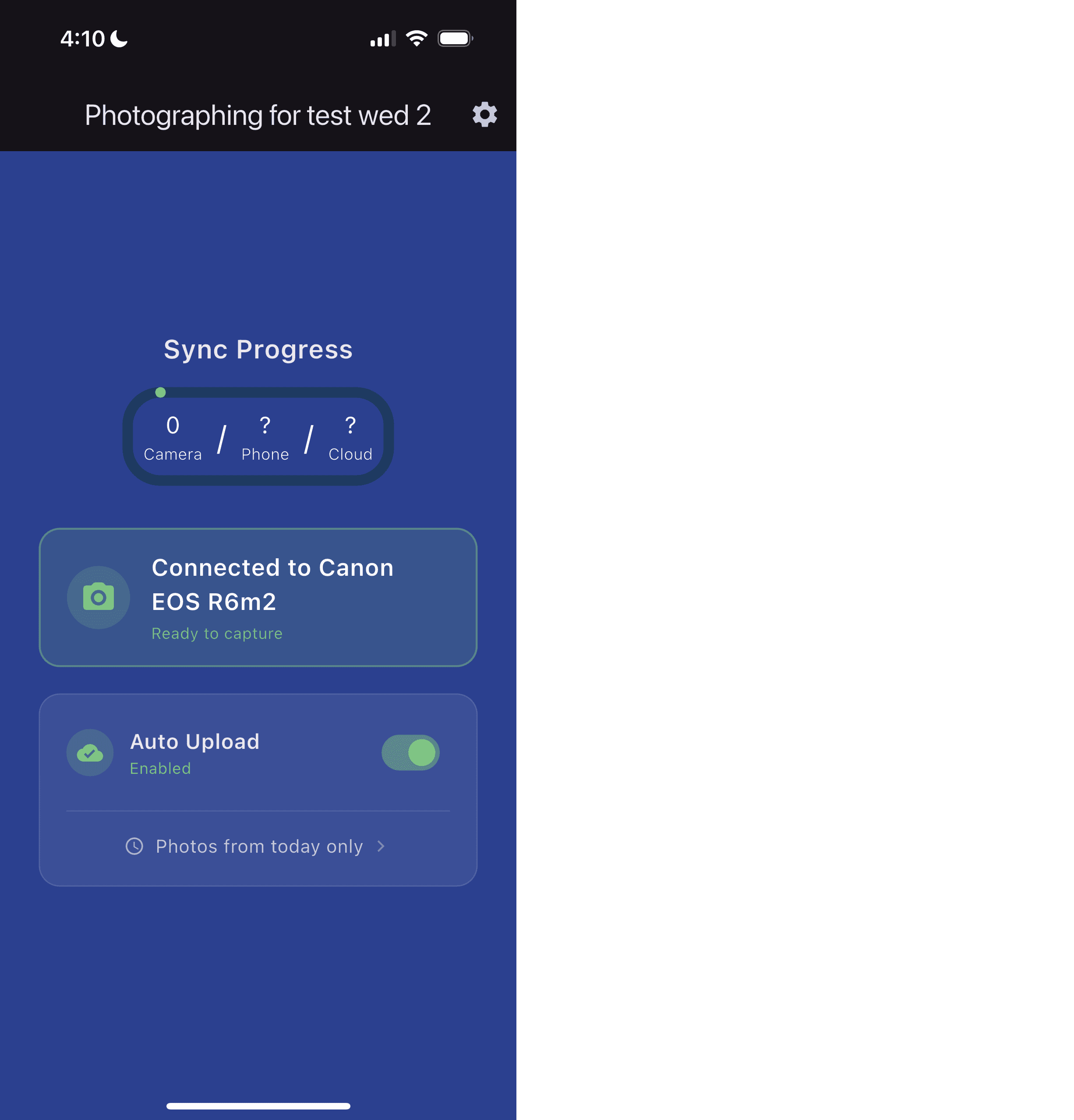 If you require RAW or big JPEGs for post-processing, the app will automatically ignore RAW files so you can shoot in RAW+JPEG. Be mindful of upload speed: shooting big JPEGs will take significantly more time to upload.